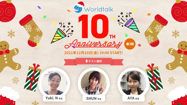 お知らせ・リリース 日本人講師のオンライン英会話「ワールドトーク」の人気講師が続々登場!無料のオンラインイベントをレポート! 2021年12月27日 WTE運営事務局 オンライン英会話「ワールドトーク」の10周年記念オンラインイベントとは? 「日本人講師」という独自の特徴を持つオンライン英会話スクー …